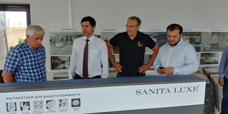 | 21 июля 2020 года Завод по производству керамогранита – АО «Керамогранит Дагестан» посетила делегация Министерства промышленности и торговли Республики Дагестан в лице министра Эмеева Б. Э. и сотрудников министерства, Фонда развития промышленности РД вместе с представителями бизнес-сообщества Северо-Кавказского региона. Было осмотрено производство и проведено рабочее совещание по вопросам реализации продукции и дальнейшего развития производства. Управляющая компания инфраструктурными объектами Республики Дагестан была представлена директором предприятия Зулпикаровым Г. Р., заместителем директора Сулеймановым М-З. М-С., главным инженером предприятия Гусейновым К. М. и сотрудниками предприятия.